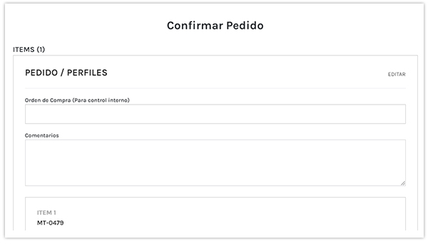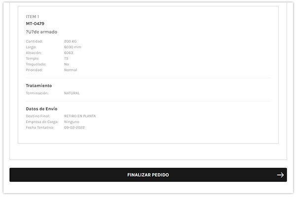 Al finalizar la lista de items se podrá avanzar en la confirmación del pedido