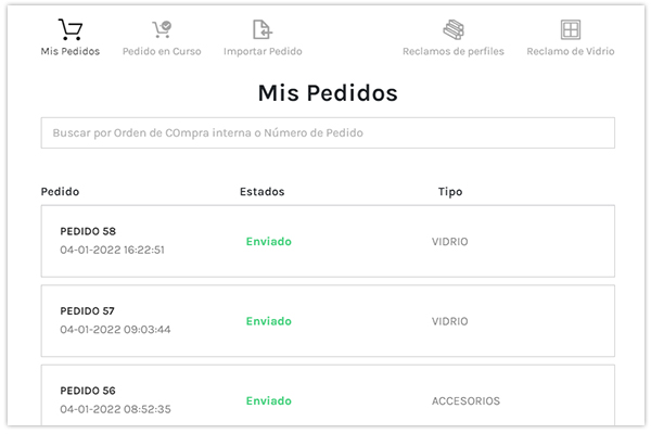 En esta instancia se puede ver el estado de cada pedido, con la caracteristica de poder hacer el seguimiento de los items que contengan otra dinámica de proceso.
